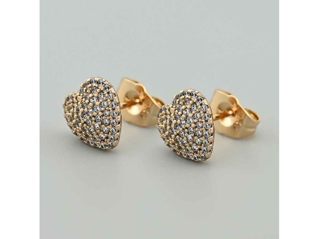 Сережки пусети Сердечка 45397 розмір 10х9мм білі фіаніти вага 1.9г позолота 18К ТМ XUPING