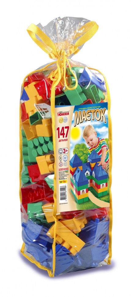 Конструктор с крупными деталями 01557 "Поместье" 147 дет. – невероятно интересная игра, предназначенная для деток возрастом от трех лет. Красочный набор состоит из 147 отдельных цветных блоков, изготовленных из сертифицированных материалов, безопасных для Вашего маленького члена семьи. Детский конструктор создан украинским производителем «Юника» и упакован в прозрачный чехол с завязочками, в котором удобно хранить все детальки. Занимательный процесс конструирования и подбора подходящих по цвету и форме фигурок прекрасно развивает логическое мышление, тренирует ловкость пальчиков, усидчивость и учит кроху доводить начатое дело до конца.
