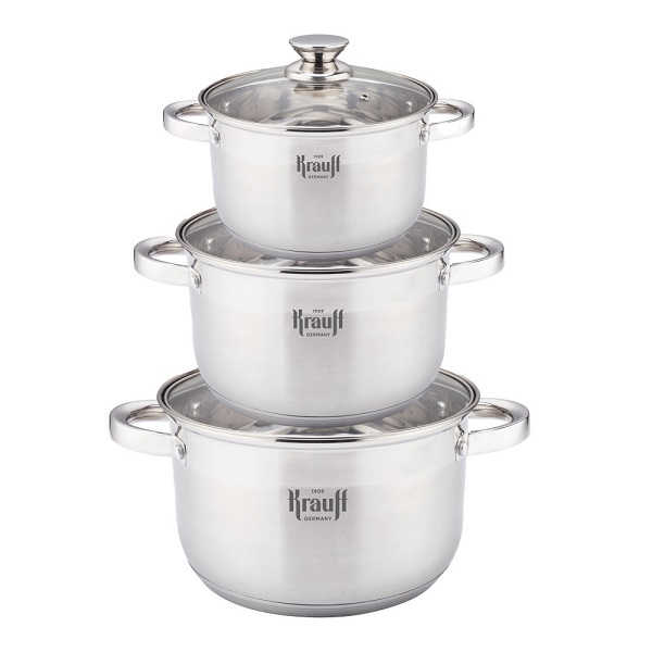 Набір кастрюль 6пр нержавіючий (1,7л, 2,4л, 3,3л) з кришкоюТМ Krauff