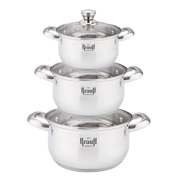 Набір кастрюль 6пр нержавіючий (1,7л, 2,5л, 3,4л) з кришкоюТМ Krauff