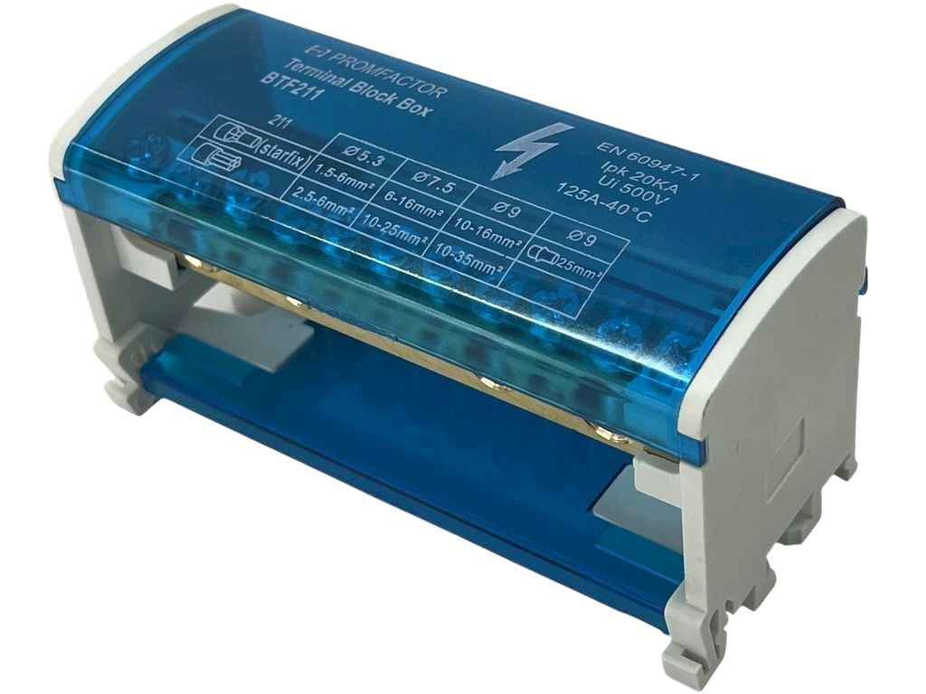 Шина нульова в корпусі 2P 125A 2x11 690V BTF211 DIN-рейка/гвинтовий/на монтажну панель ТМPF