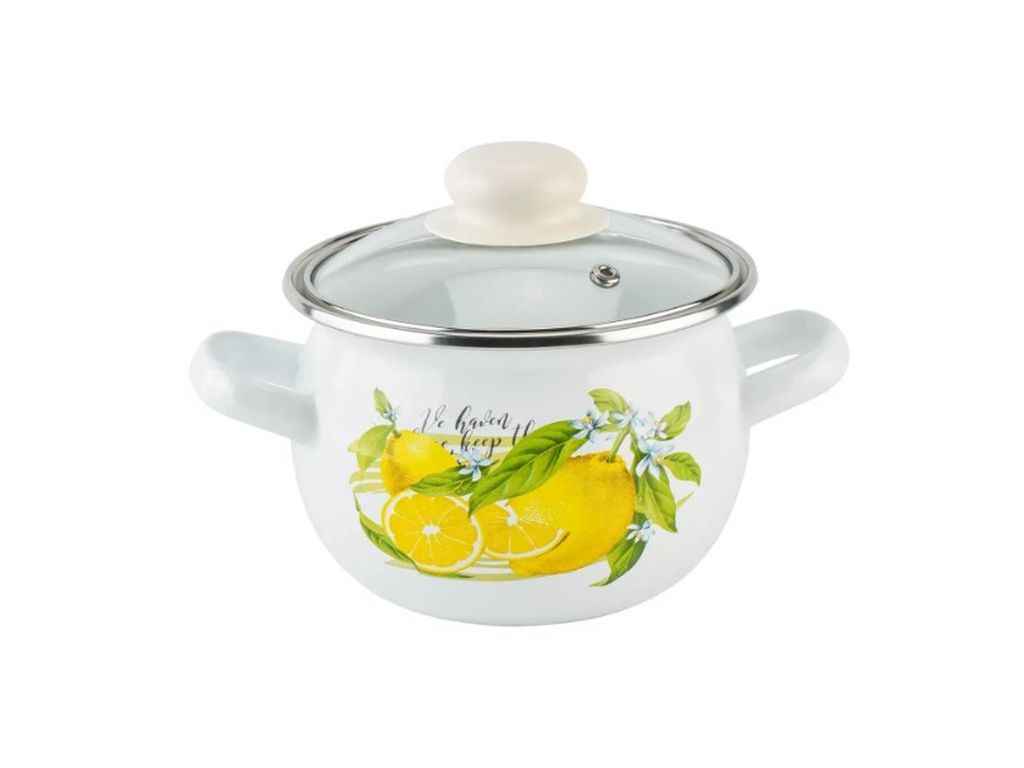 Каструля ем. 1,5л /2 сферична з н/ж обідком та скляною кришкою Лимон (біла) I61908/2 ТМ IDILIA