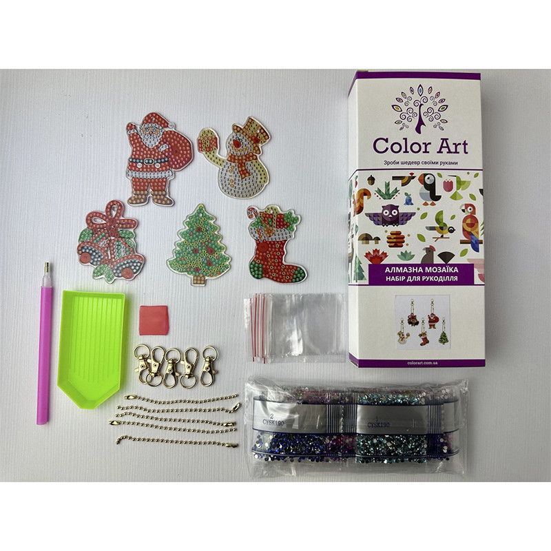 Набор брелоков для алмазной мозаики – это яркая новинка в мире рукоделия!Блестящие, цветные и стильные аксессуары, созданные собственноручно, станут отличным украшением для сумочки, рюкзака или ключей. А еще – это отличный вариант подарка для близких, друзей или коллег.В комплект входит:основы для брелоков, которые выкладываются камешками с обеих сторон;набор цветных стразов в пронумерованных пакетиках;инструменты для удобной работы;цепочки с карабинами для подвешивания готовых брелоков.Создайте с воодушевлением и добавляйте блеска в свой день!