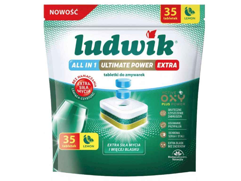 Капсули для посудомийних машин 35шт All in One Абсолютна потужність екстра Лимон ТМ LUDWIK
