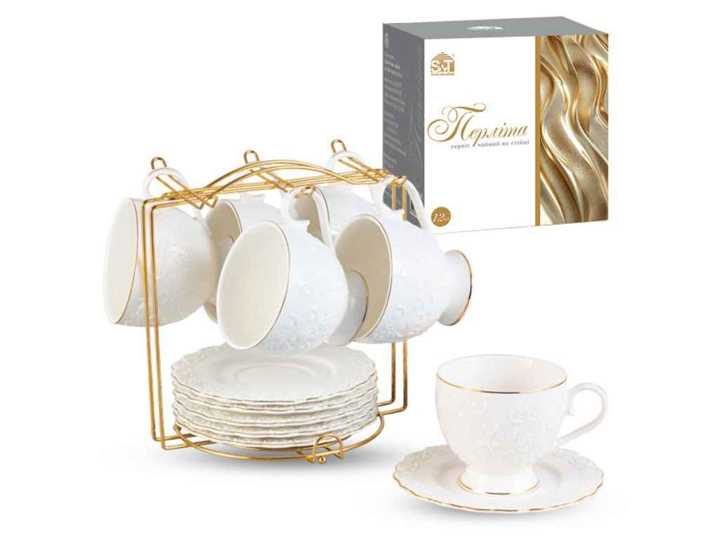 Сервіз чайний 12пр. 15220-00 на стійці Перліта (чашка 260мл, блюдце 14см) ТМ SNT