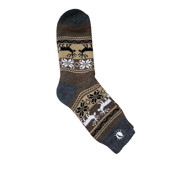 Шкарпетки чоловічі високі, в'язані, 100% шерсть 27-29р. (олень+сніжинки)