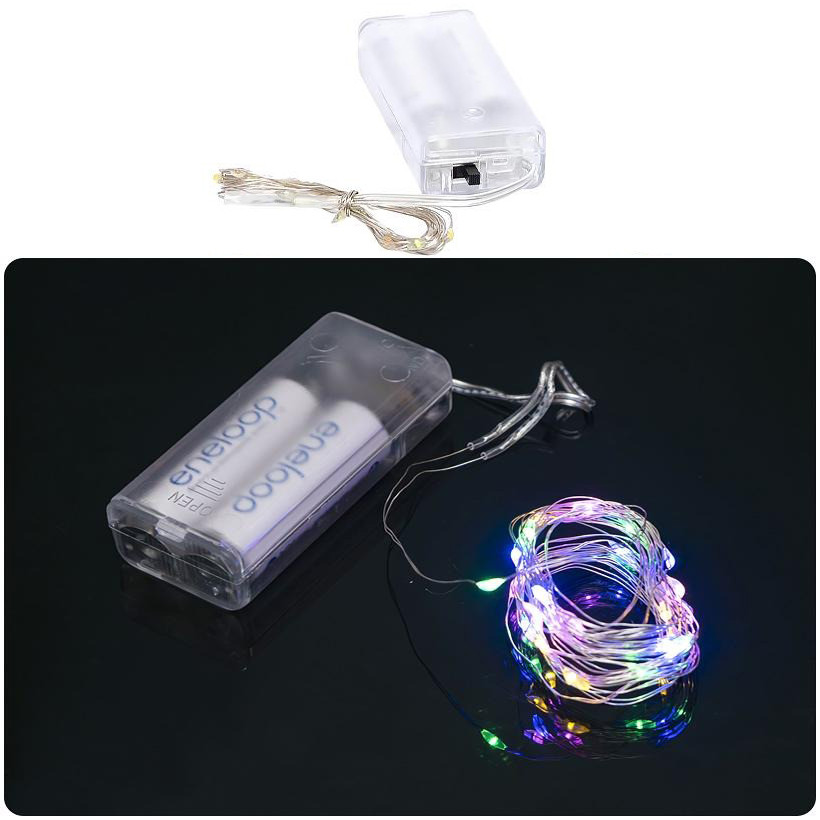 Гирлянда «Роса» длиной 2 метра с 20 разноцветными микролампочками. Питание осуществляется от 2 батареек типа AA (в комплект не входят). Лампочки светятся в режиме постоянного многоцветного свечения, создавая мягкое декоративное освещение. Изготовлена из гибкой тонкой проволоки, что позволяет придавать гирлянде любую форму. Идеально подходит для украшения интерьера, новогодней елки, окон или фотозоны.