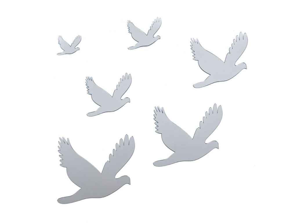 Дзеркальний декор акриловий самоклеючий Птахи срібло 6шт (D) SW-00002520 ТМSTICKER WALL