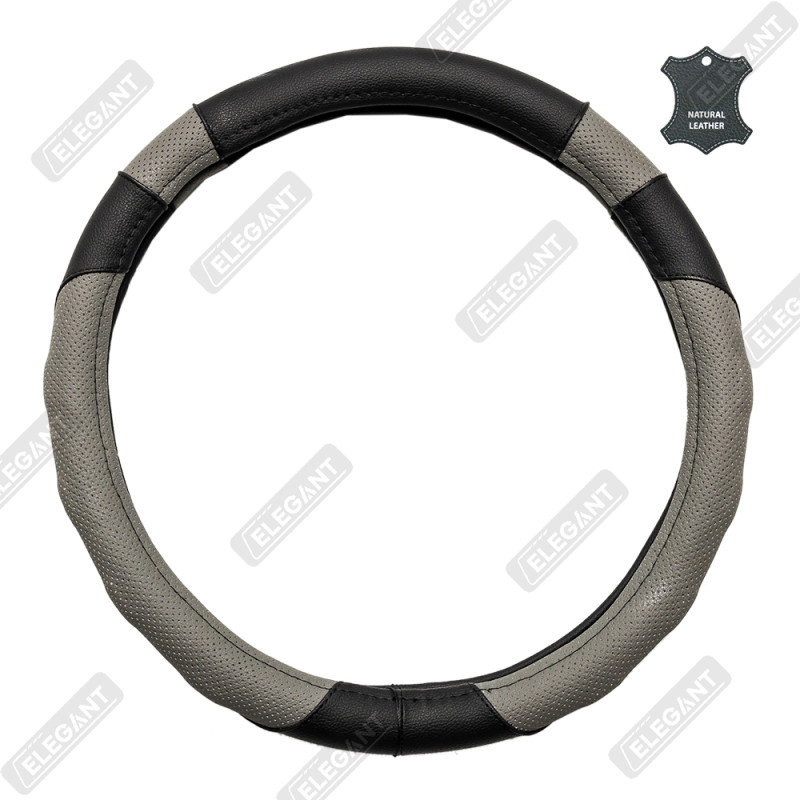 Чохол на кермо шкіра "М" (37-38см) чорний Elegant 105798 перфорація+сірі вставки/біла основа/1 шов
