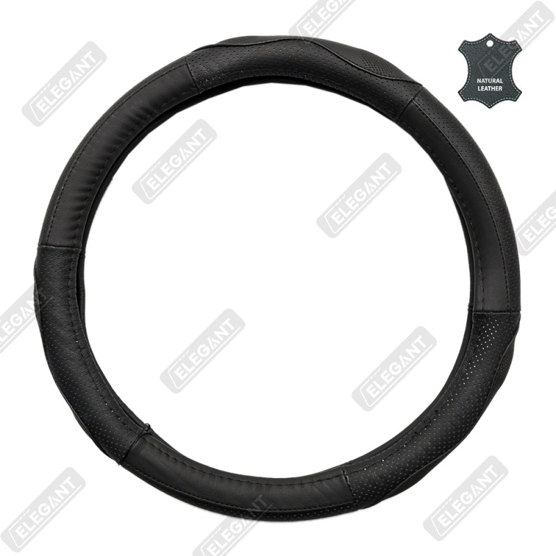 Стильний та зручний чохол на кермо Elegant Plus виготовлений із високоякісної натуральної шкіри з перфорацією, що забезпечує приємне на дотик покриття та чудову вентиляцію. Міцна конструкція гарантує надійний захист керма від стирання й пошкоджень, а точна посадка забезпечує комфортне утримання. Легко встановлюється, підходить для більшості автомобілів із кермом розміру M.