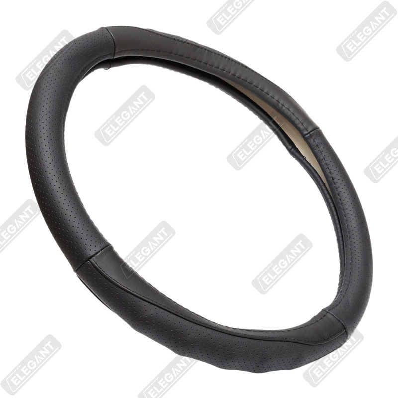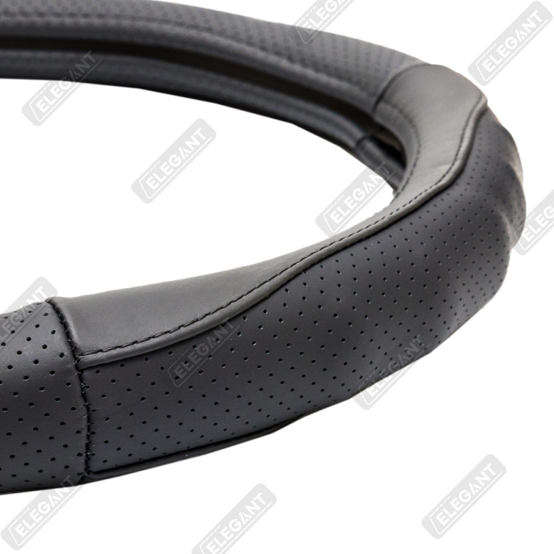 Чохол на кермо шкіра "М" (37-38см) чорний Elegant 105807 перфорація+чорна вставка /біла основа/4 шва