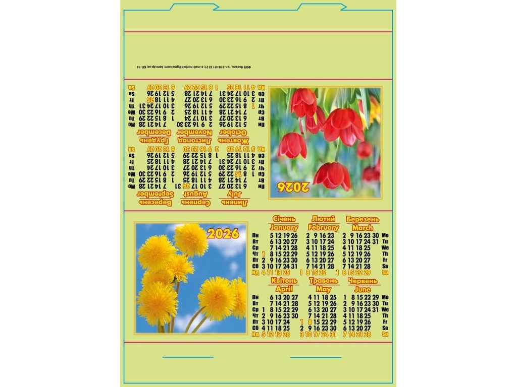 Календар намет стійка (Квіти) 2026 арт.КП-14 ТМ Україна