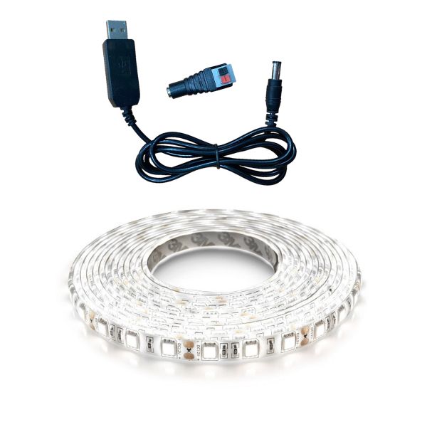 Світлодіодна стрічка біла 5м, 4000-4500K, 9Вт (120 LED/метр) з перехідником на USB