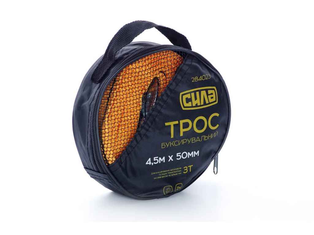 Трос буксирувальний 4,5м 3 тонни, 50мм, гаки (сумка) ТМСИЛА