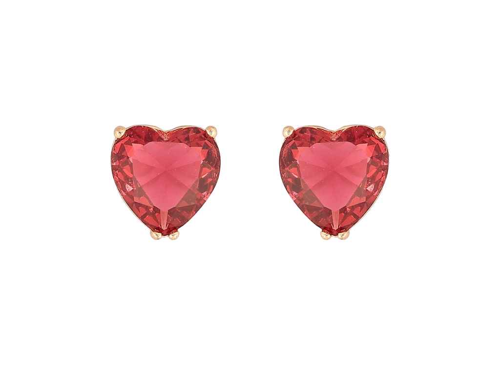 Сережки пусети ML 18K Малинові кристальні серця 9х9мм 303596 ТМ XUPING