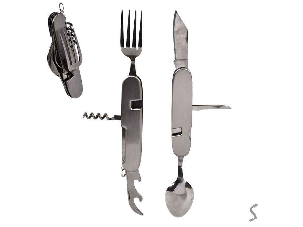 Мультитул туристичний 6в1 ложка/виделка/ножі/штопор 11см WL-591 ТМ STENSON