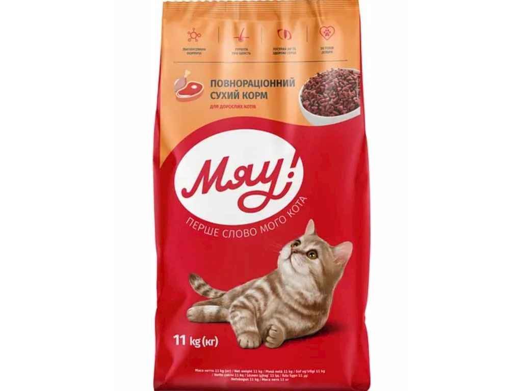 Сухий корм для дорослих котів Повнораціонний / Яловичина 11 кг ТМ МЯУ