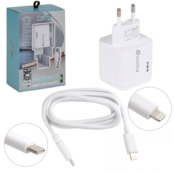 Мережевий зарядний пристрій SOLMA PD&QC3.0 USB A+C з кабелем Type-C to Lightning 1.0м