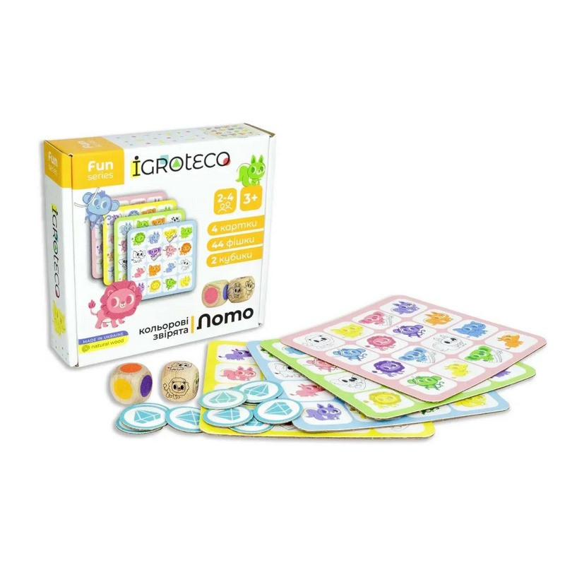 Умное лото Цветные зверята - это яркая настольная игра, которая объединяет обучение и развлечения. Она создана специально для самых маленьких игроков, которых интересует мир цветов и животных. Игра отлично подходит для вечернего досуга в кругу семьи или для развивающих занятий в детском саду.Что в наборе- 4 картонных игровых поля размером 4×4 клетки;- 44 цветные фишки;- деревянный кубик с цветами;- деревянный кубик с изображениями животных.Как игратьКаждый игрок получает собственное игровое поле. По ходу игры участники по очереди бросают два кубика: один показывает цвет, другой - животное. Вместе они образуют комбинацию, например: жёлтый зайчик или красный тигр. Если такое животное есть на поле игрока, он накрывает его фишкой. На каждом поле присутствуют 2 чёрно-белых животных, которые принимают любой цвет, что добавляет игре вариативности.Побеждает тот, кто первым накроет фишками ряд из четырёх клеток по горизонтали, вертикали или диагонали. Правила игры интуитивно понятны даже для детей от 3 лет.Умное лото Цветные зверята способствует активному развитию следующих навыков:- цветовосприятие;- внимательность и память;- логическое и ассоциативное мышление;- умение ждать своей очереди;- командное взаимодействие и коммуникация.