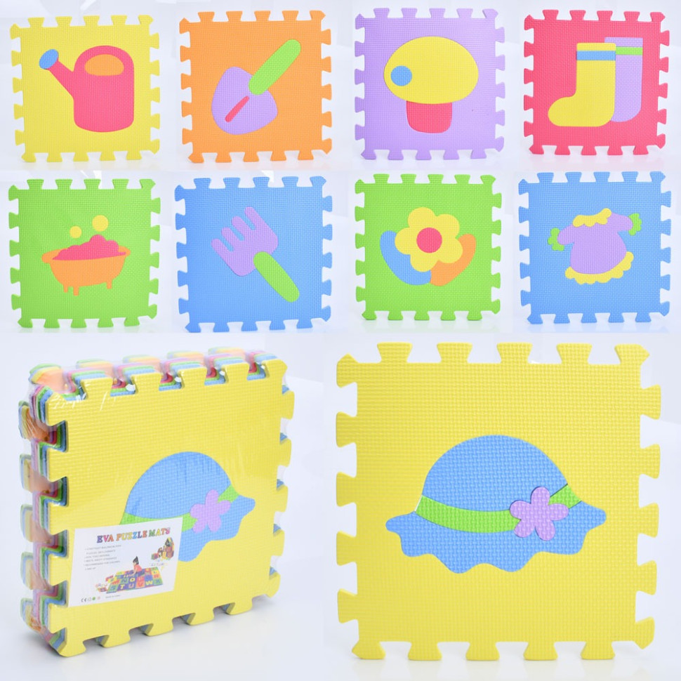Детский коврик Мозаика "Предметы" MR 1275, 9 деталей, EVA, 30х30 см