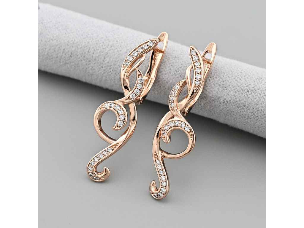 Сережки Лаура 43538 32*9мм білі фіаніти 3,0г позолота РО ТМ XUPING