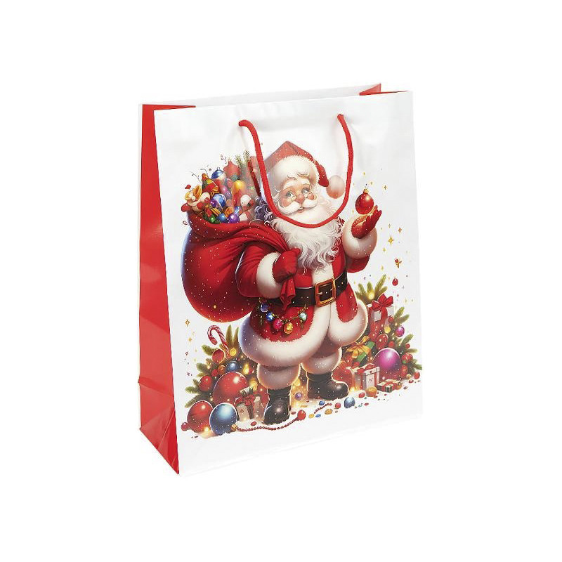 Подарочный новогодний пакет с изображением Санты - яркое и праздничное дополнение к любому подарку. Отлично подходит для упаковки игрушек, сладостей, сувениров и других новогодних презентов.