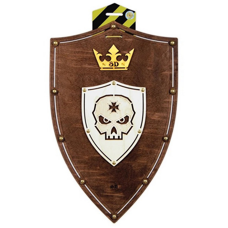 Щит игрушечный деревянный Череп - отличный подарок для любителей рыцарей и средневековья.Материал фанера 6 мм. Имеет накладку и декоративные элементы. Выполнен в цвете Венге.Безопасная игрушка для ребенка, он не заточен, а острые части закруглены и зашлифованы.Высота 47 см.Ширина 30 см.