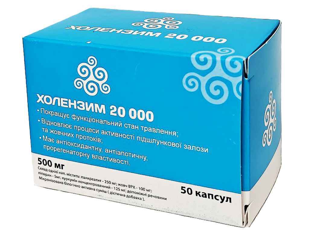 Добавка дієтична 50 капсул ХОЛЕНЗИМ 20 000 Підтримка травлення та обміна речовин (500 мг) ТМ БІОК МЕДІКАЛ