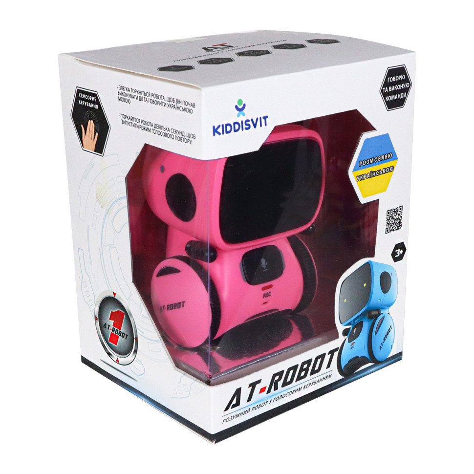 Встречайте AT ROBOT – идеального компаньона для вашего ребенка! Этот умный робот с голосовым и сенсорным управлением может свободно общаться на украинском языке. С ним так весело играть! Ведь он умеет отвечать на команды, танцевать и реагировать на прикосновения, дающие множество веселых и динамичных моментов.Разговаривает на украинском. Дарит ребенку возможность весело и интерактивно учить родной язык.Реагирует на голос. Робот выполняет голосовые команды, двигается в заданном направлении и взаимодействует с вами.Сенсорное управление. Три сенсорных датчика позволяют роботу реагировать на прикосновения, двигаться и общаться, что делает игру еще более интересной.Запись и воспроизведение фраз. Запишите до трех голосовых сообщений, и робот их повторит, что добавляет игре элемент персонализации.Танцует и воспроизводит музыку. Робот знает 12 мелодий и танцев, которые точно поднимут настроение и сделают игру подвижнее.Настройка громкости. Семь уровней громкости позволяют регулировать звук, чтобы игра была комфортной.Цвет: розовый.Размер: около 13 см.Питание: 3 батарейки типа ААА (не входят в комплект).В комплект входит:- 1 робот;- инструкция.Рекомендовано для детей от 3 лет.