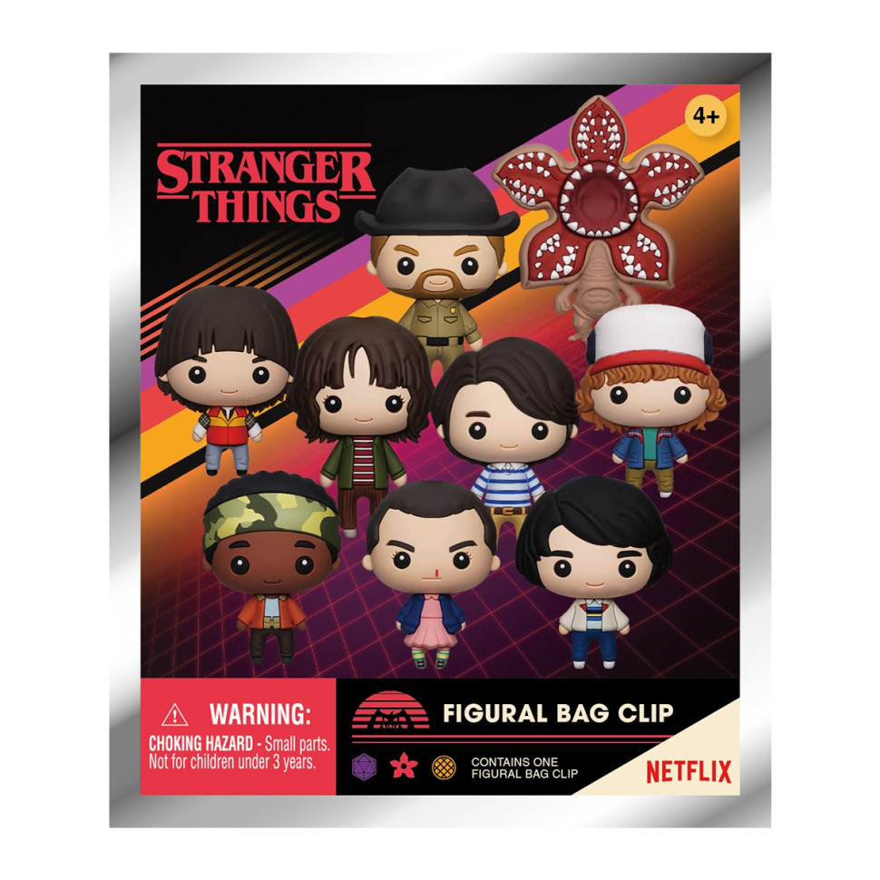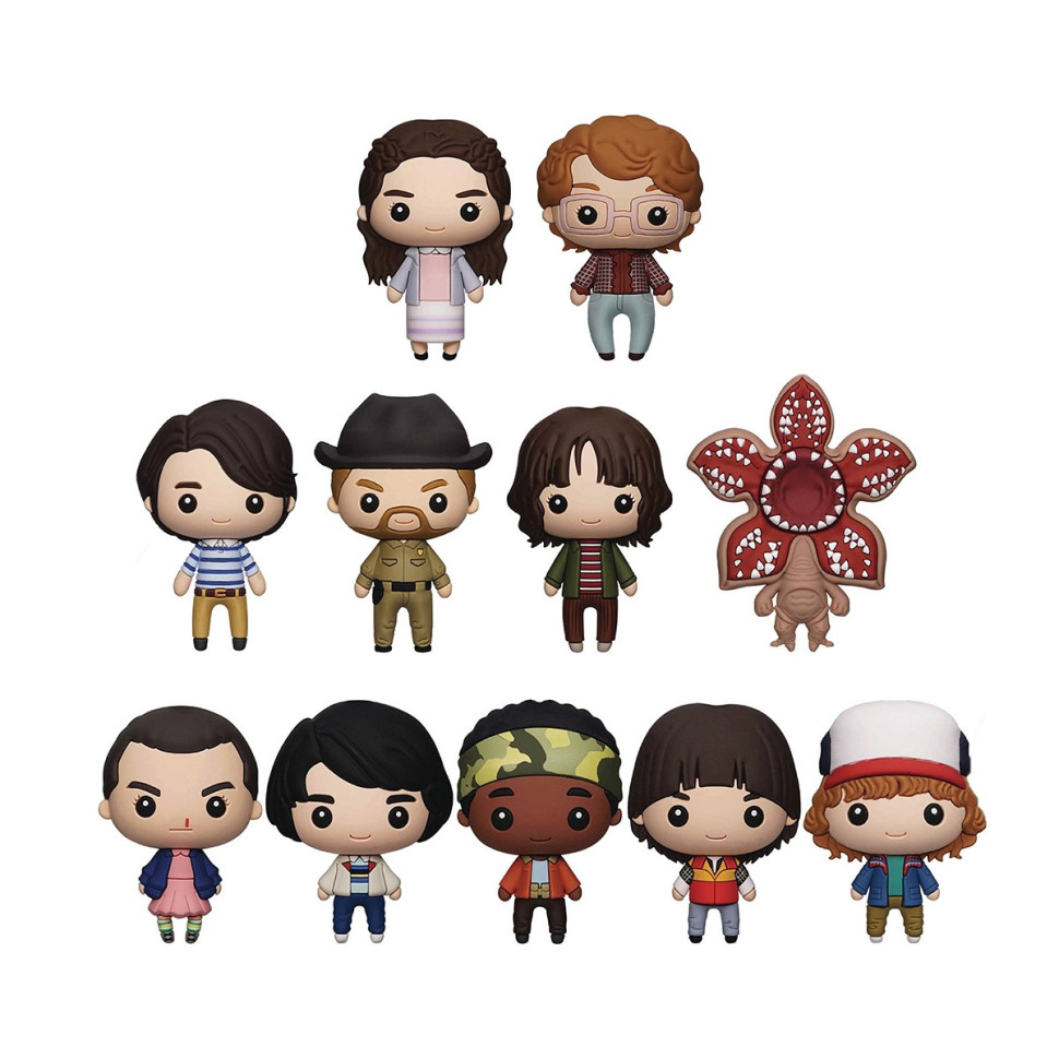 В ассортименте 11 главных героев из которых 2 редких: Одиннадцать, Майк Уилер, Лукас Синклер, Уилл Байерс, Дастин Хендерсон, Стив Гаррингтон, Джим Гоппер, Джойс Байерс, Демогоргон, Нэнси Уилер (редкая) и Барбара Голланд(редкая).