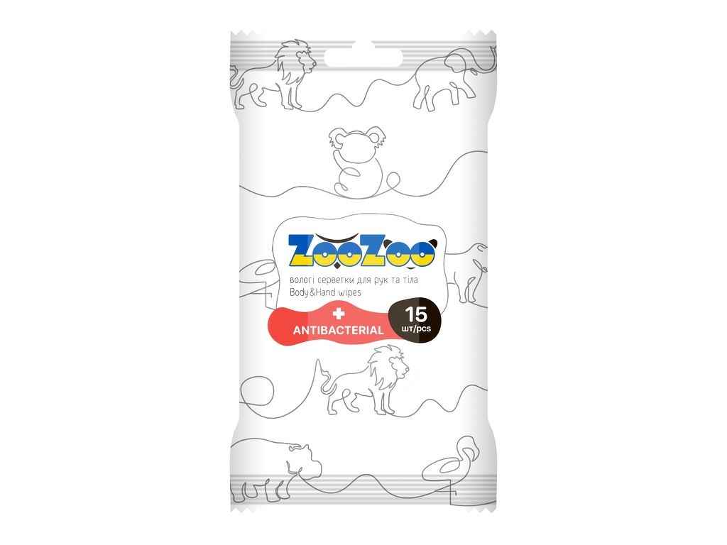 Вологі серветки 15шт для рук та тіла Антибактеріальні ТМ ZOOZOO