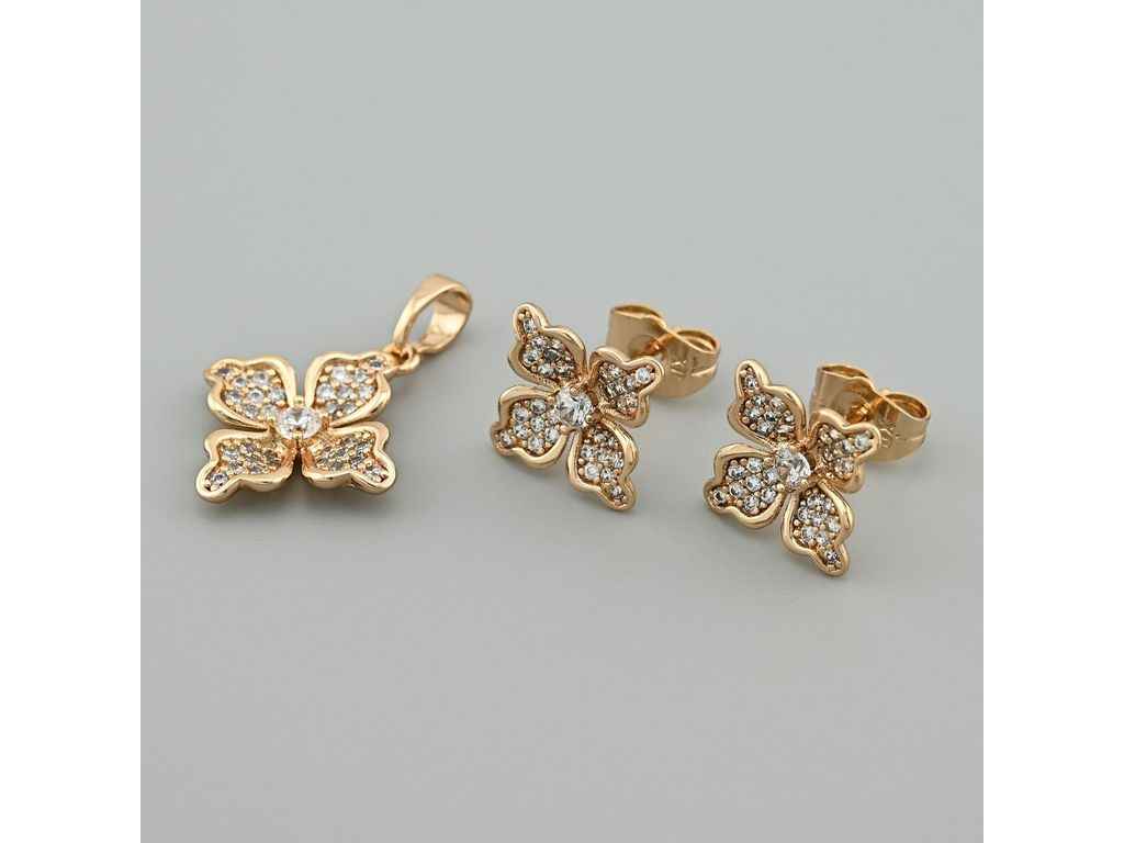 Набір Квітка 55331 кулон 24х17мм сережки11х11мм білі фіаніти 3.2г позолота 18К ТМ XUPING