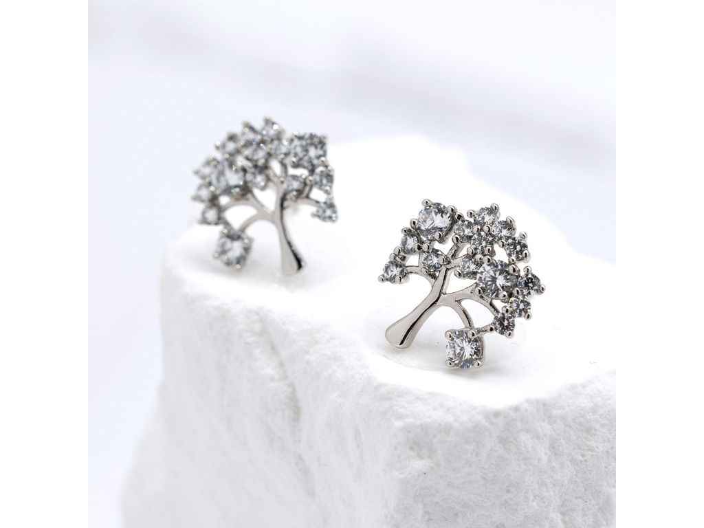 Сережки пусети Дерево 57460 14х13мм білі фіаніти 2.1г Біле Золото ТМ XUPING
