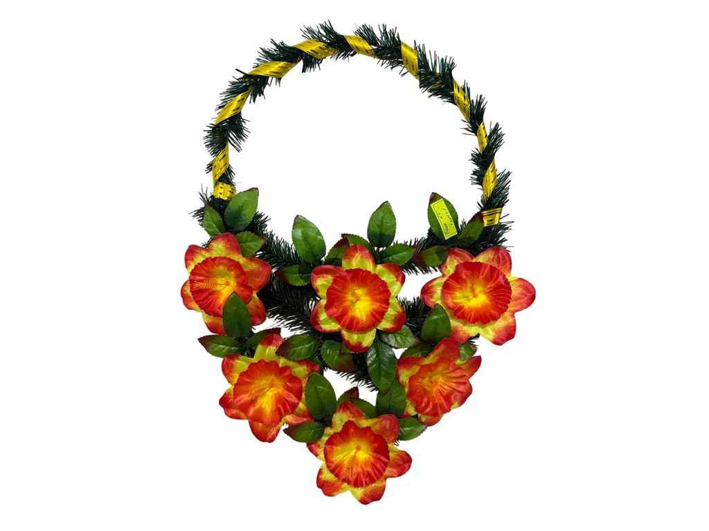 Вінок поминальний Нарцис 60х33см червоний з жовтою серединкою ТМ Memori