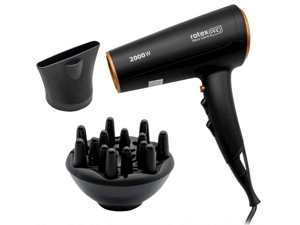 Фен (2000 Вт, 2 швид., дiфузор, концентратор, чорний) RFF200-B ТМ ROTEX