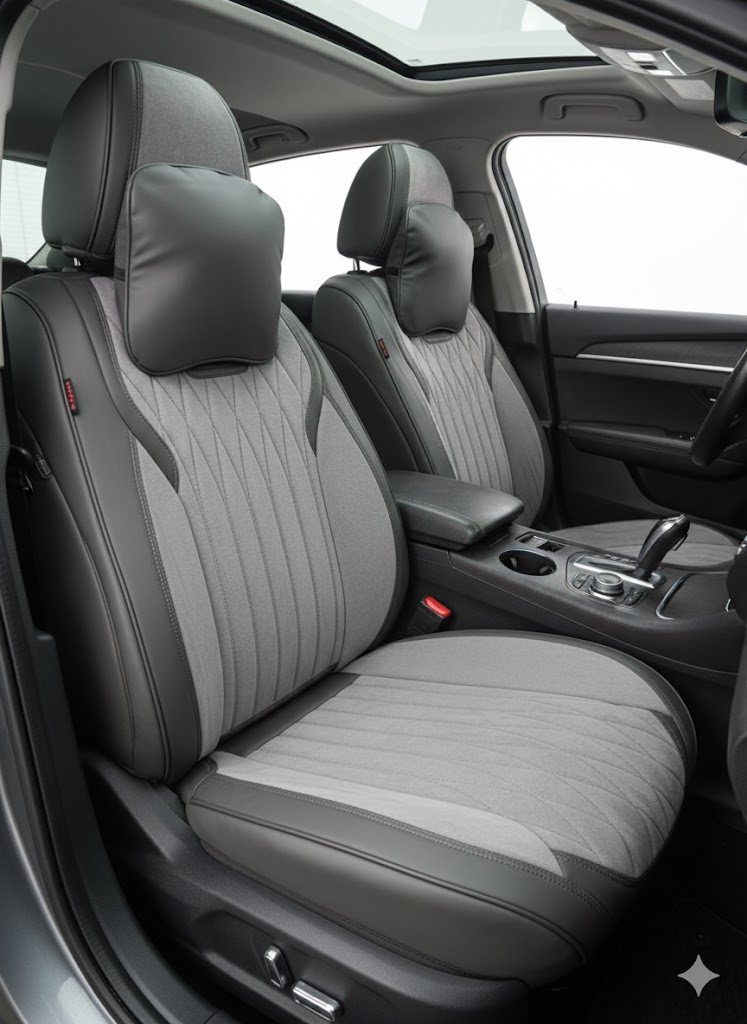 Чохли - Накидки сидіння Алькантара + Шкір. зам 5D "HANA" (спинка закрита) Сірі