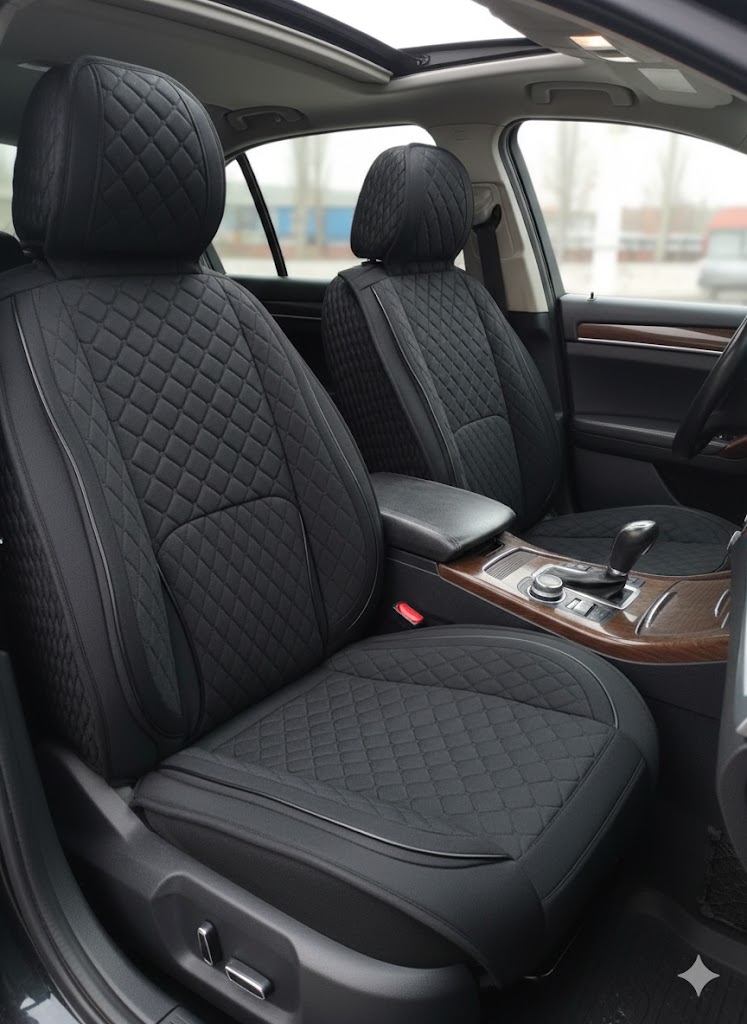 Чохли - Накидки сидіння Тканина 5D "KUMO" (спинка закрита) Чорні