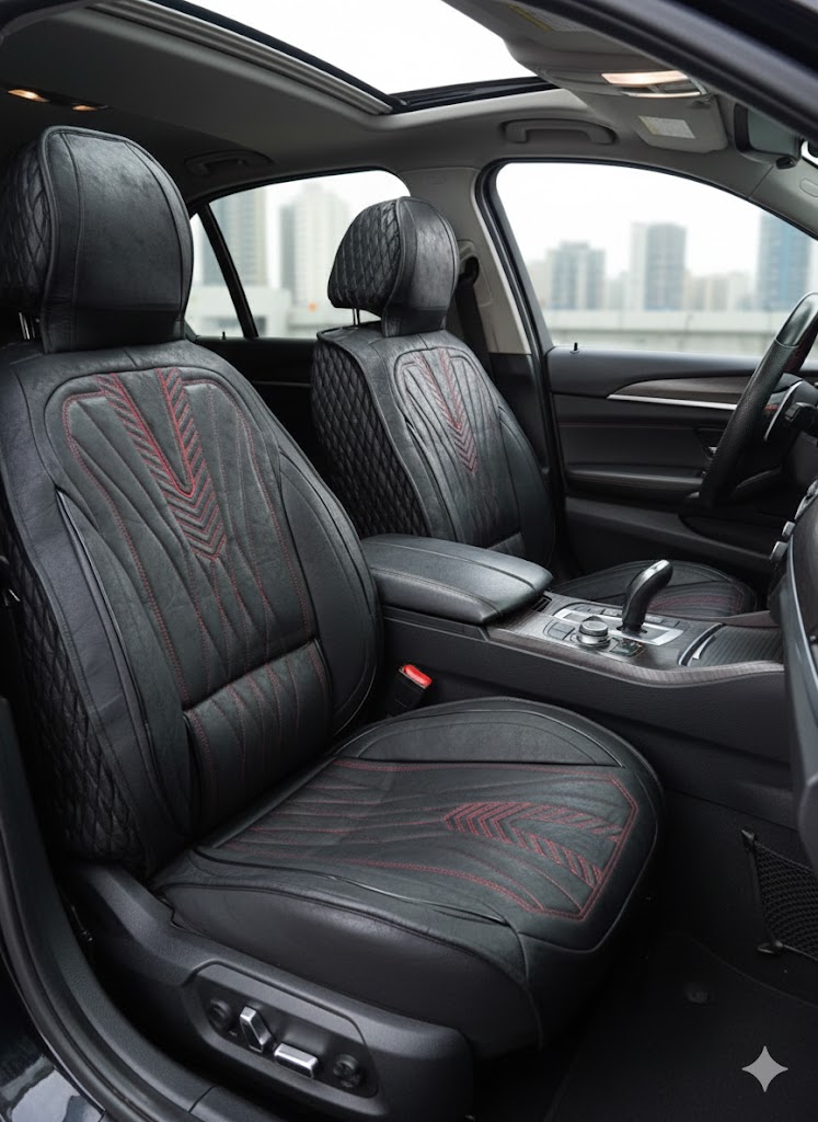 Майка чорна/червона передня автотканина "АвтоСвіт"- "MAX " (Закритий бік та низ/2-а підголовника)