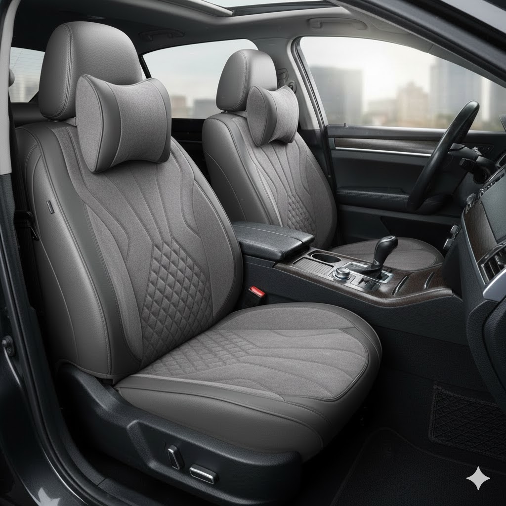 Чохли - Накидки сидіння Алькантара + Шкір. зам 5D "NAMI" (спинка закрита) Сірі