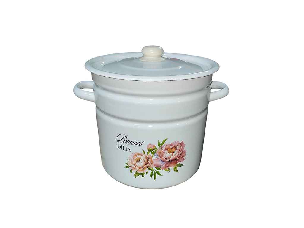 Каструля ем. 12л /2 циліндрична Півонія (біла) I1624/2 ТМ IDILIA