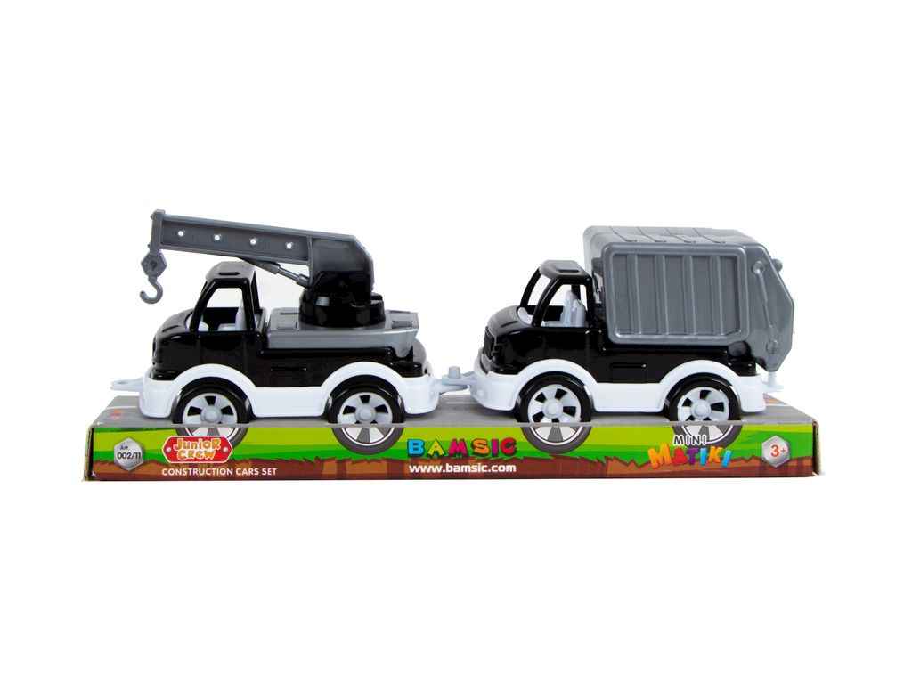 Набір дитячий “Mini Matiki ” – включає два автомобілі – кран та сміттєвоз, виконані в яскравих кольорах. Комплект призначений для дітей віком від 3 років, він ідеально підійде для маленьких будівельників, зацікавлених у пізнавальній та активній грі.