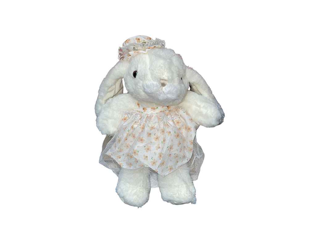 Мяка іграшка Зайка в сукні та капелюшку 30см білий арт.648-2 помаранчева сукня ТМ PRC