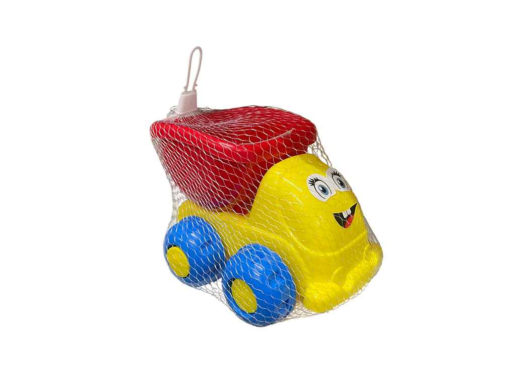 Іграшка дитяча “Машинка самоскид Кроха” у вигляді невеликого самоскида. Машинка виготовлена в яскравих кольорах з кузовом, що можна піднімати, щоб “вивантажувати” вантаж, що робить його дуже привабливим для дітей. На кабіні самоскида намальовані очі та усміхнене обличчя, що додає іграшці веселого та доброзичливого вигляду.