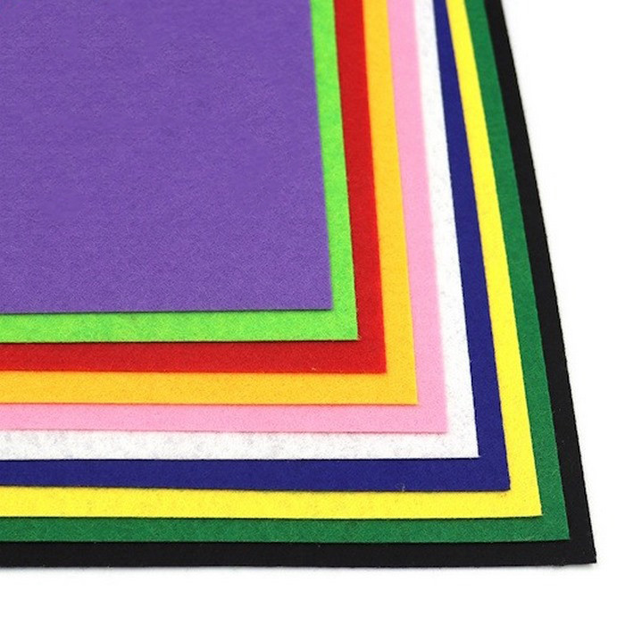 Наличие клеевого слоя: На обратную сторону нанесен качественный адгезив, который надежно фиксирует фетр на бумаге, картоне, дереве, пластике или металле.