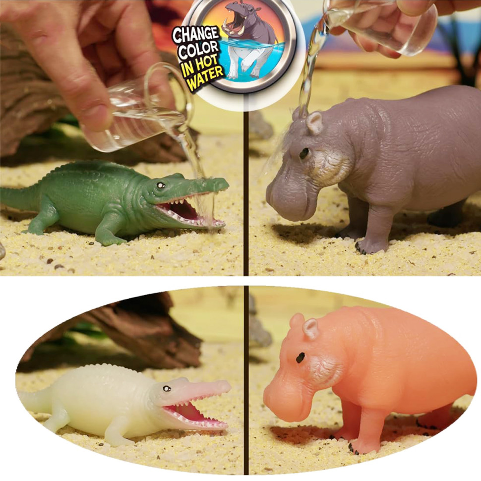 Некоторые игрушки могут менять цвет в воде, а один герой — светится в темноте! Соберите их все, чтобы узнать, кто что умеет! Чтобы герои меняли цвет в воде, нужно окунуть игрушку в воду, температура которой должна быть выше 30-32 градусов. А для того, чтобы герой светился в темноте, его нужно оставить на солнце от 1 до 5 минут, после чего игрушка животного будет светиться.