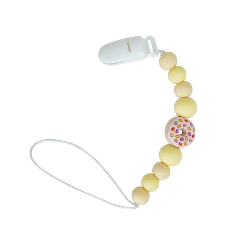 Силиконовая цепочка для пустышки "Пончик" - практичный и милый аксессуар для ежедневного использования.Цепочка длиной 24 см надежно фиксирует пустышку, предотвращая ее падение на пол или потерю во время прогулок, поездок или дома.Изготовлен из высококачественного пищевого силикона. Силиконовые элементы мягко массируют десну и помогают уменьшить дискомфорт.Дизайн в виде пончика привлекает малыша, стимулирует зрительное восприятие. Цепочка легко очищается, подходит для повседневного использования.