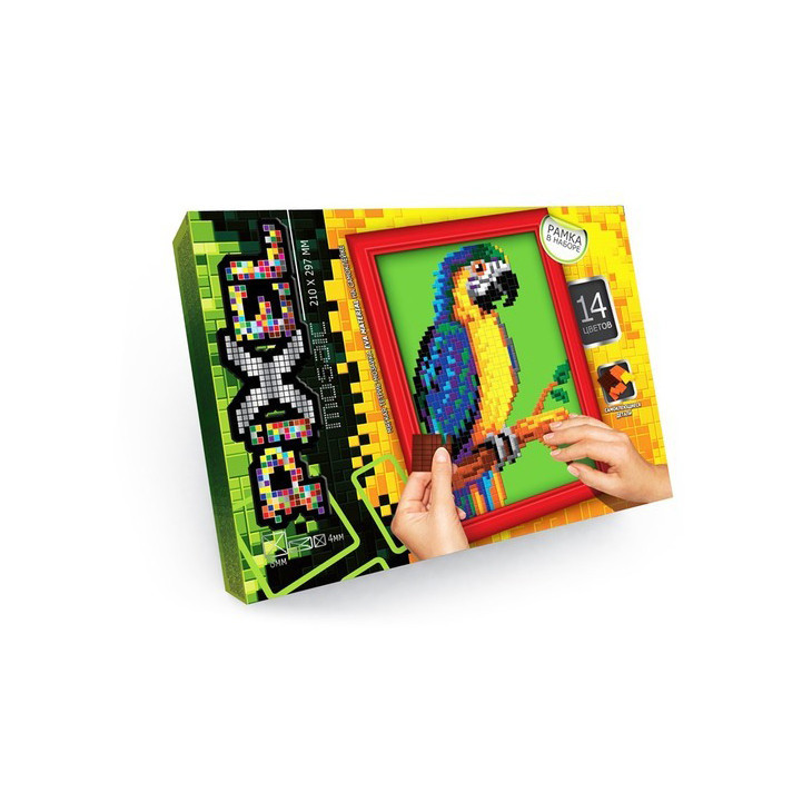 Набор для творчества "Мозаика Пиксель: Попугай" РМ-01-02, 21х29,7 см, рамка в наборе