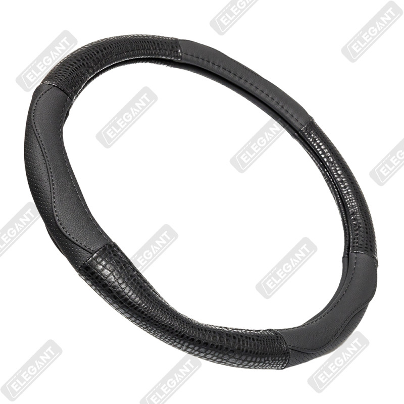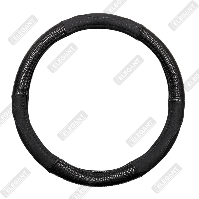 Чохол на кермо шкіра "M" (37-38см) чорний Elegant 115002 вставка лакована/змііна шкіра