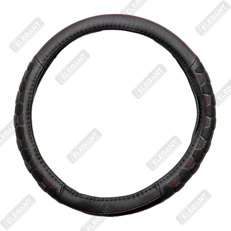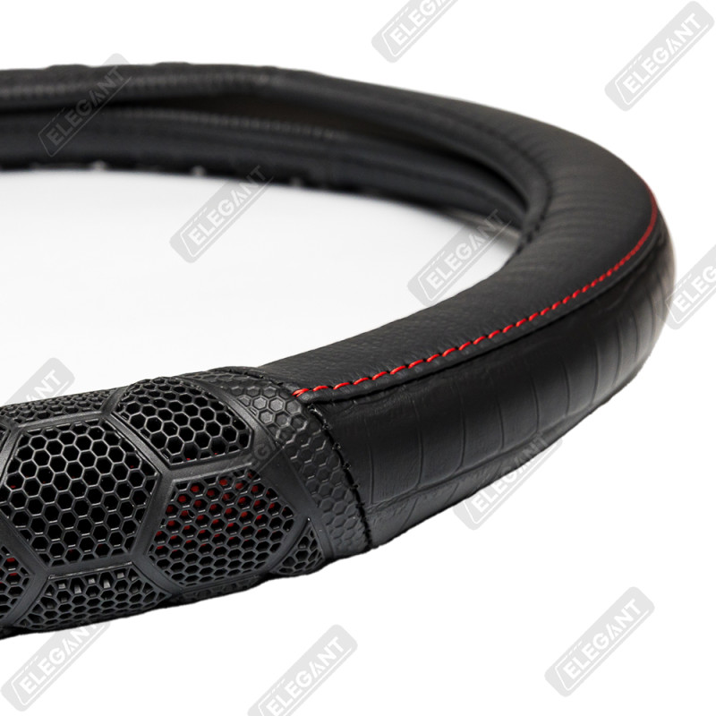 Чохол на кермо шкіра "M" (37-38см) чорний Elegant 115011 перфорація соти/вставка+червона нитка