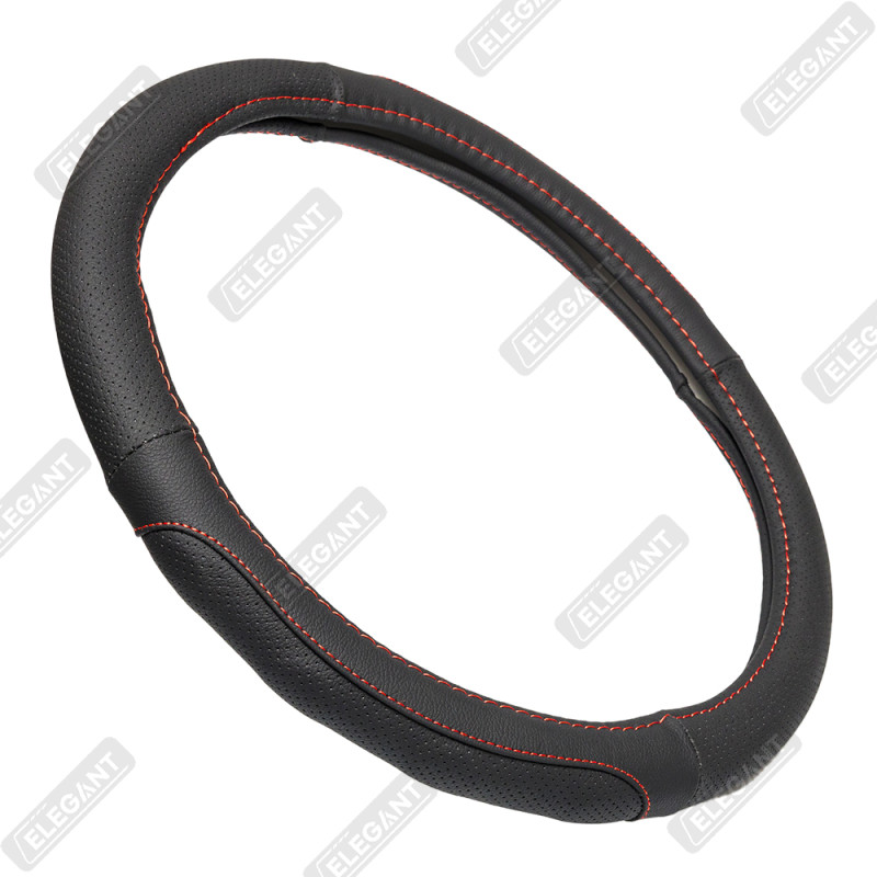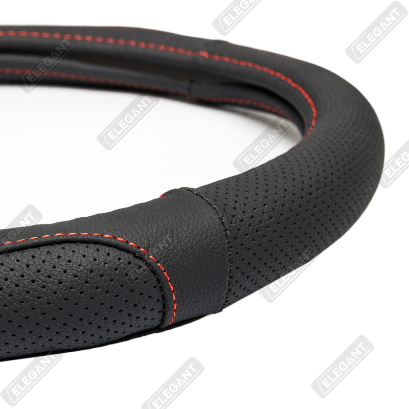 Чохол на кермо шкіра "M" (37-38см) чорний Elegant 115121 перфорація з червоною ниткою
